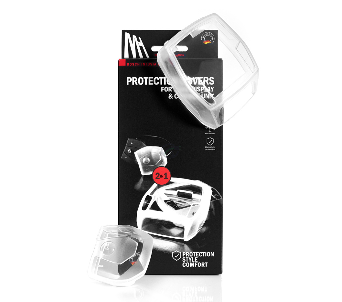 De Bosch Intuvia 2-in-1 Display & Control Unit Cover biedt bescherming voor zowel het Intuvia display als de bedieningsunit. Deze gecombineerde hoes is speciaal ontworpen voor e-bikes met het Bosch Intuvia systeem en beschermt beide onderdelen tegen krassen, stof, vuil en opspattend water, zonder dat dit ten koste gaat van de functionaliteit of het gebruiksgemak.