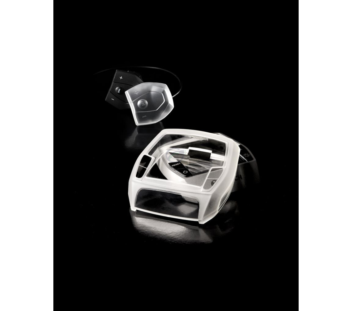 De hoes is gemaakt van thermoplastisch polyurethaan (TPU), een duurzaam, flexibel en slijtvast materiaal dat zijn vorm behoudt onder verschillende weersomstandigheden. Dankzij het transparante ontwerp blijft het display goed leesbaar, terwijl de knoppen goed bereikbaar blijven voor eenvoudige bediening.