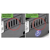 Deze Phylion SF-03 SMART 37V 11Ah fietsaccu met achterlicht heeft een SMART systeem in de fietsaccu. De fietsaccu is daarom alleen geschikt voor fietsen waarbij een SMART systeem fietsaccu nodig is. U kunt aan onderstaande afbeelding zien of uw originele Phylion SF-03 SMART 37V 11Ah fietsaccu uitgevoerd is met een SMART systeem.