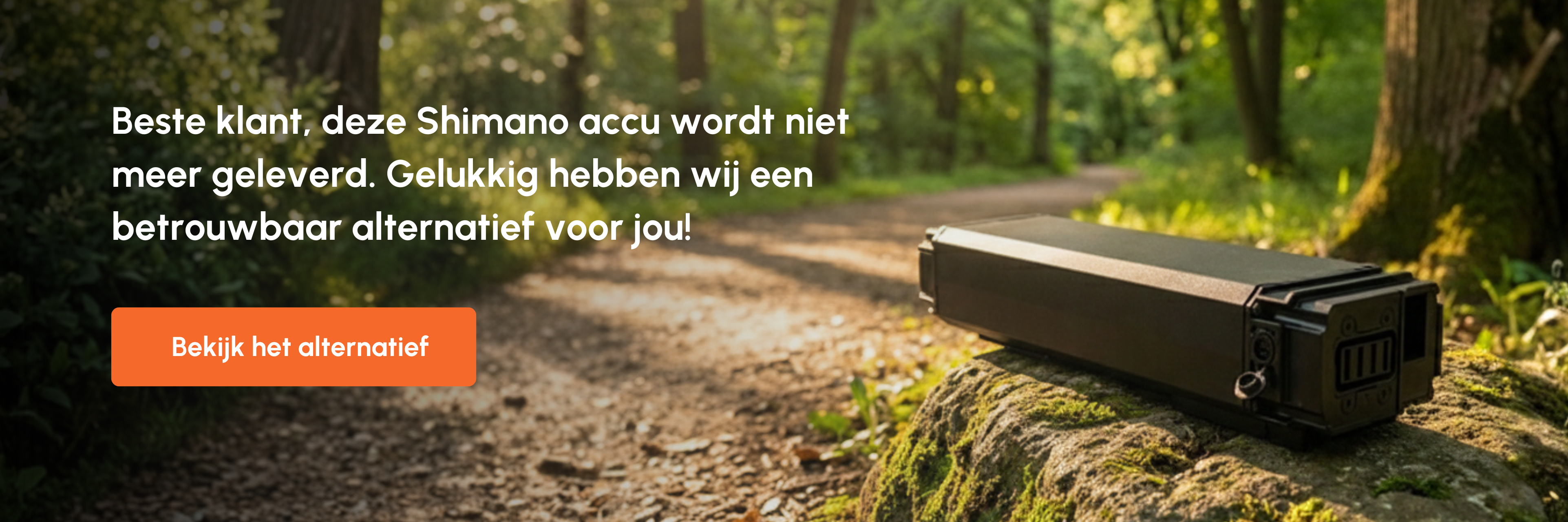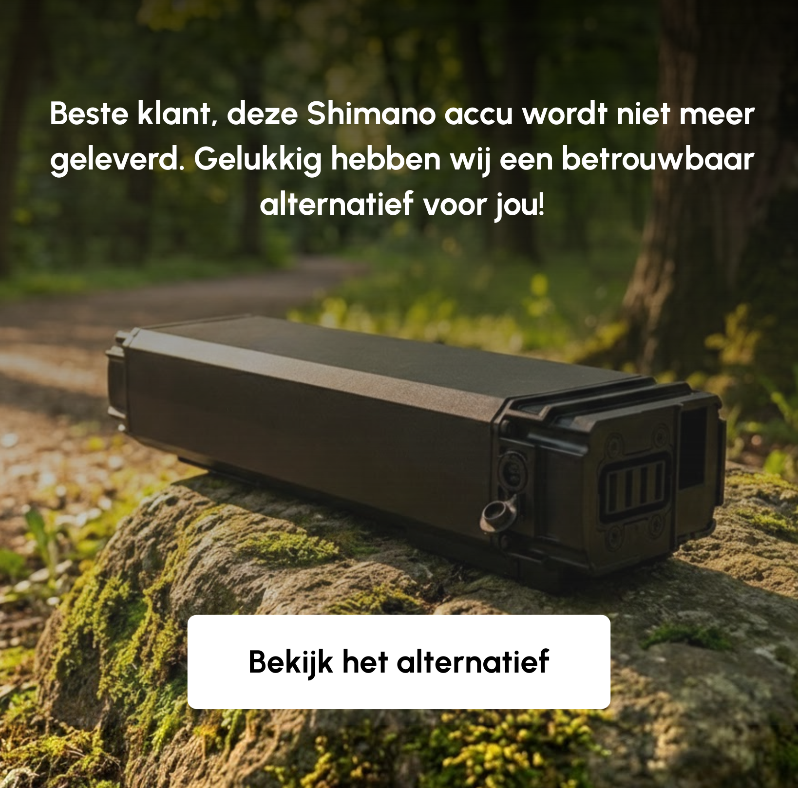 Wil je liever nog verder fietsen? Bekijk dan de Shimano Steps BT-E6001. Deze accu is geschikt voor hetzelfde Shimano Steps systeem en heeft een 21% grotere actieradius dan de Shimano Steps BT-E6000.