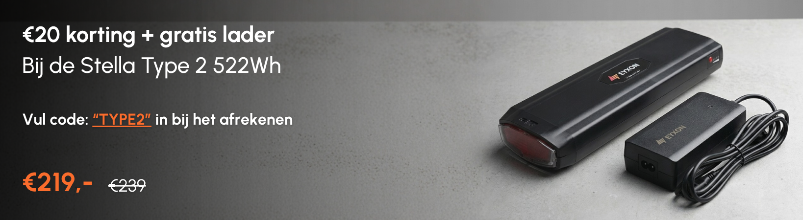 Daarnaast bieden we ook de Stella Type 2 36V 11Ah Compatibel aan. Deze heeft een 32% kleinere actieradius, maar is daardoor ook lichter dan de Stella Type 2 14.5Ah Compatibel.