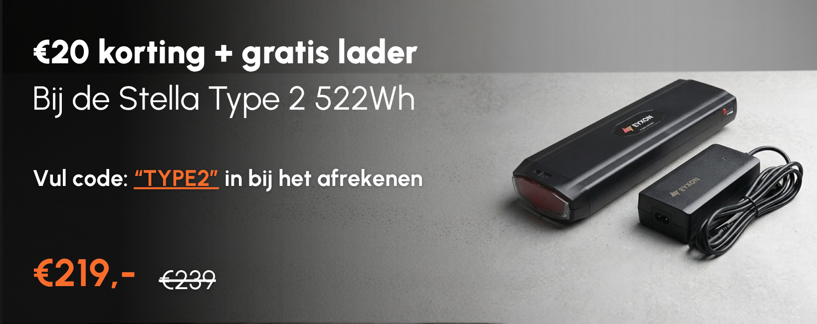 - Met de Stella Type 2 17.5Ah kun je 21% meer kilometers afleggen op één acculading