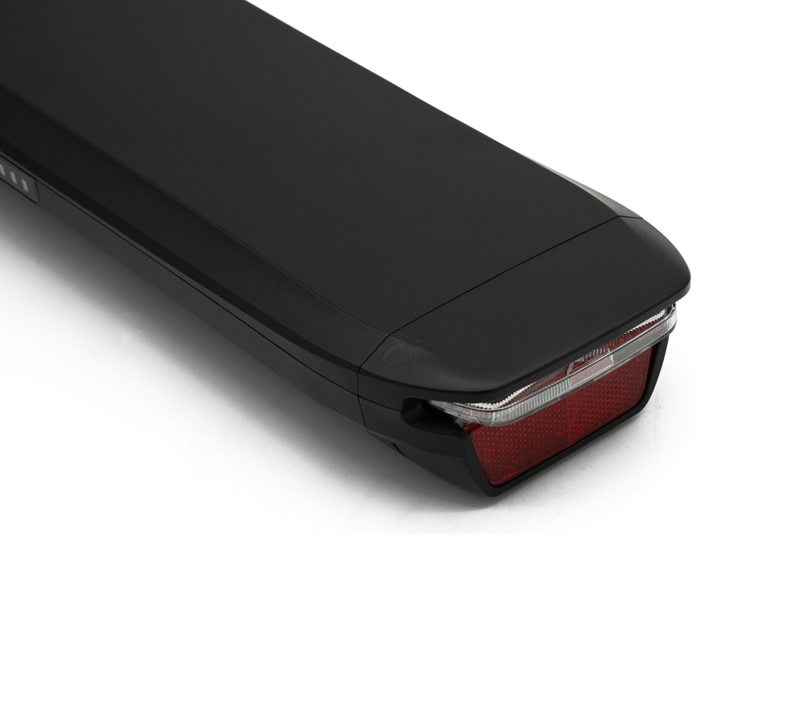- De accu beschikt over een geïntegreerd achterlicht en reflector